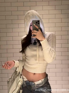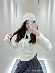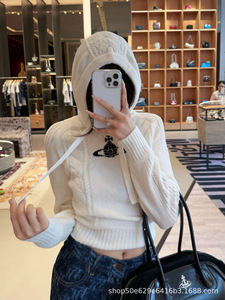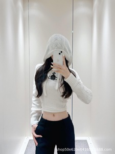 25SS薇薇秋冬新款土星刺绣毛衣荷叶领韩版修身显瘦连帽针织衫女装