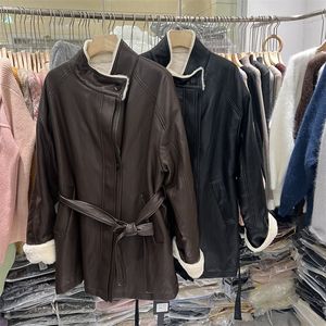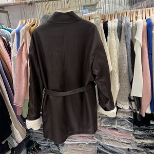 秋冬加厚款皮衣外套女咖色pu皮时尚宽松系带中长款韩版收腰宽松