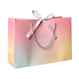 马卡龙礼品纸袋化妆品包装袋礼物衣服收纳配丝带现货收纳袋