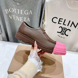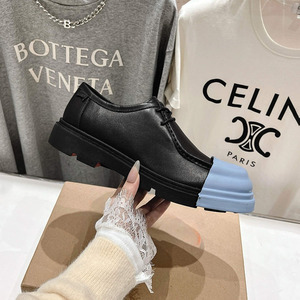 东莞产~2025年早春新款德比鞋绑带胶头可拆卸拼色小众真皮女单鞋