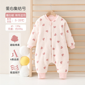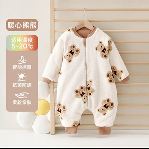 婧麒婴儿暖心绒睡袋秋冬款恒温蓄热保暖宝宝睡衣儿童防踢被子神器