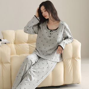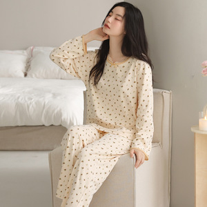 爽棉睡衣女款春秋款女2025新款纯棉可外出女士长袖秋季条纹家居服