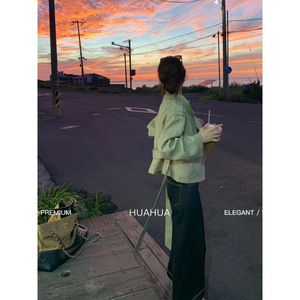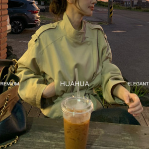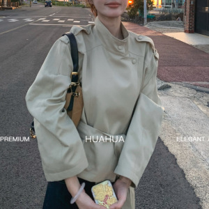 ~韩系秋季短款卡其色风衣外套女宽松百搭小个子薄款上衣格子风衣