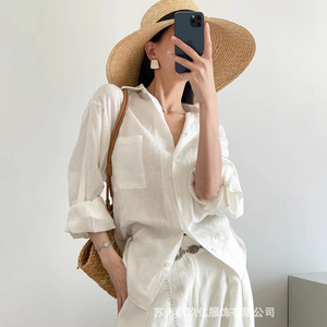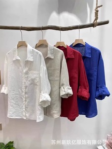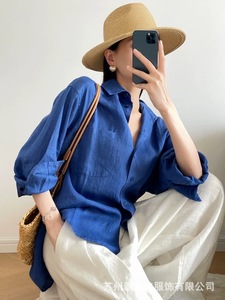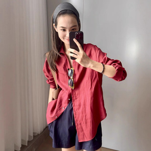 2025秋季新款韩版时尚纯色翻领拼接口袋汉麻衬衫女简约百搭开衫