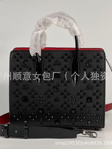 2025新款cl手提包欧美时尚外贸百搭红底铆钉购物袋手提包包27cm