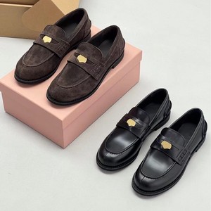 高品质~m*u家金币乐福鞋真皮复古增高英伦风一脚蹬小皮鞋单鞋女