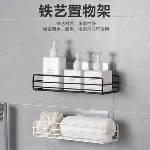 铁艺浴室置物架壁挂沐浴露收纳架卫生间免打孔洗漱用品架厨房客厅