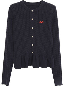 温柔风麻花针织开衫女春秋韩系穿搭毛衣外套修身收腰裙摆短款上衣