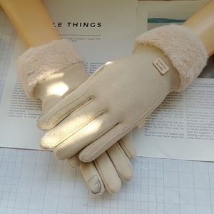德绒女士秋冬季保暖手套加绒加厚毛口户外骑行开车运动触屏手套