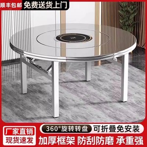 特厚304不锈钢转盘折叠大圆桌圆台面便携式一体家用火锅饭桌餐桌