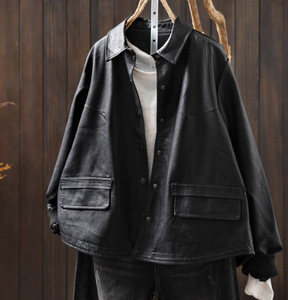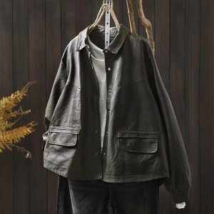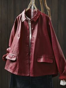 秋季新款 皮衣外套女PU皮设计感复古休闲宽松机车风皮夹克81315