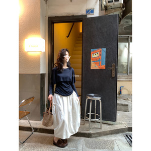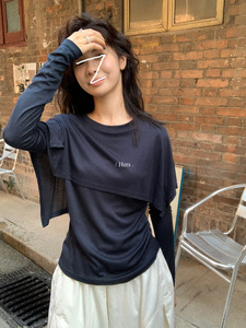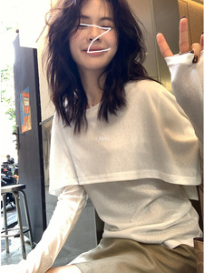 2025早秋新款披肩领假两件长袖白色T恤女休闲时尚洋气百搭上衣潮