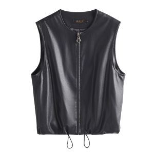 2025年春秋新款韩版海宁小皮衣女短款修身无袖机车大码皮马甲外套