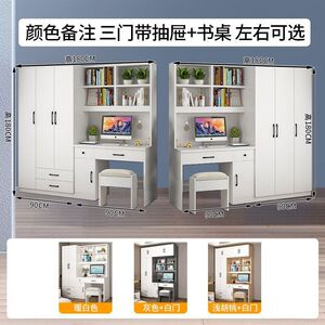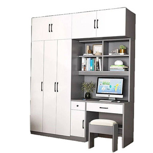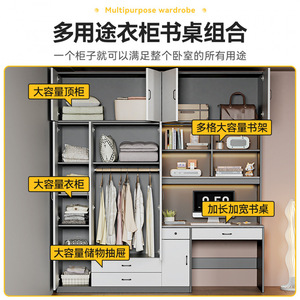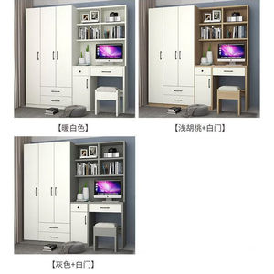 简约衣柜书桌一体组合家用卧室写字台小户型书架连体储物柜可定品