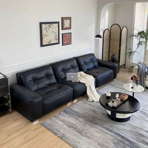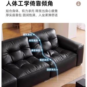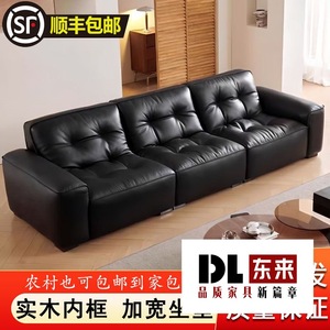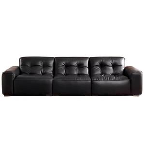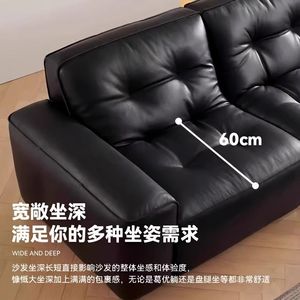新款中古风黑金刚真皮沙发极简意式轻奢直排客厅黑色皮沙发