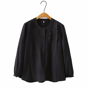 2025秋大码衬衫女开衫圆领荷叶边上衣百搭简约休闲衫胖mm衬衣929