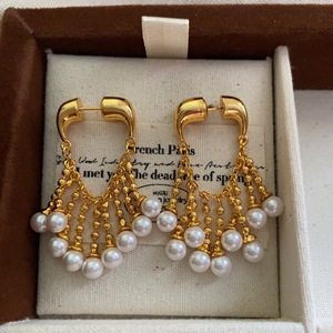 一款多戴珍珠流苏耳扣耳环金属链条时尚轻奢百搭小众设计高级耳饰