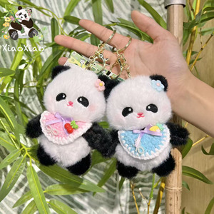新款创意围兜熊猫包包挂饰成都文创精致小巧水果围兜熊猫毛绒挂件