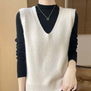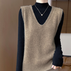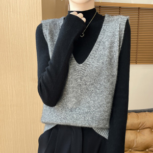 外穿羊绒双面V领马甲背心女秋冬新款无袖纯色百搭羊毛针织打底衫