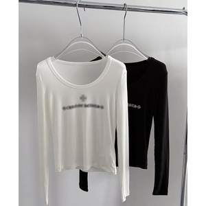 南油早秋新款辣妹U型领修身t恤藏肉显瘦设计感长袖百搭上衣xy4967