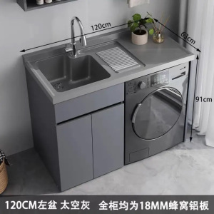 蜂窝铝全铝洗衣机柜阳台水槽洗衣池洗衣机一体柜阳台切角阳台水池