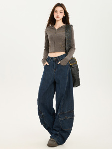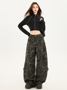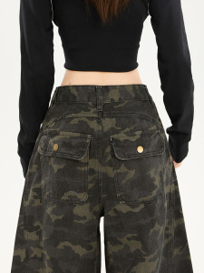 美式复古高街大口袋迷彩休闲长裤秋冬直筒宽松百搭显瘦阔腿工装裤