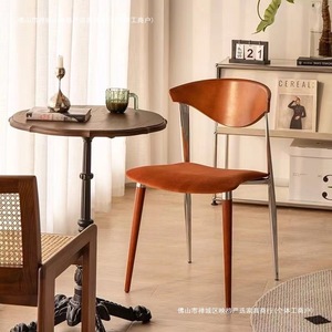 大C椅-樱桃木色靠背+复古橘色天鹅绒坐垫