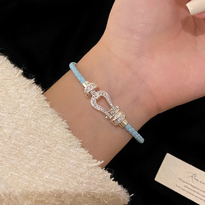 R2064蓝色细编绳马蹄扣手链