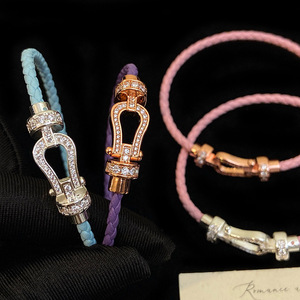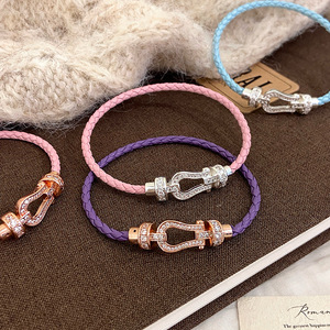 满钻超闪锆石皮革编织绳磁吸马蹄扣手链手绳女轻奢高级感百搭手饰