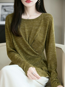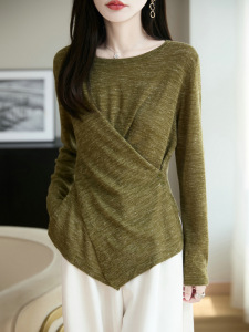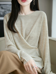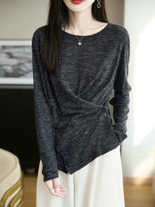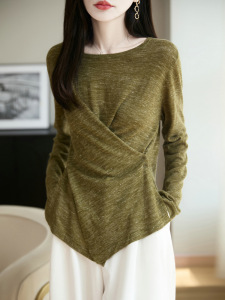 新款天丝细绒棉长袖亚麻女夏季清凉圆领打底衫薄款显瘦宽松上衣