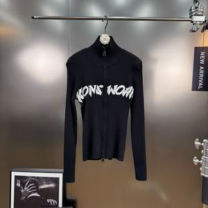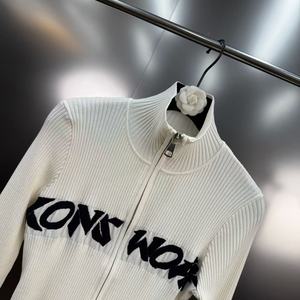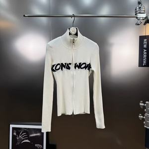 立领长袖拉链拼色字母图案拉链设计针织毛线开衫