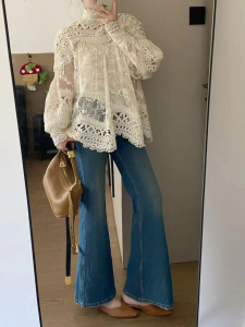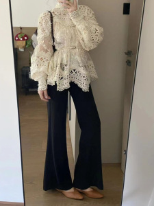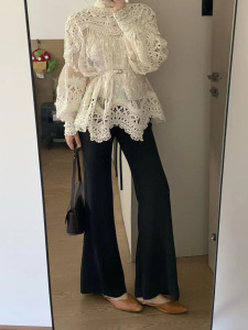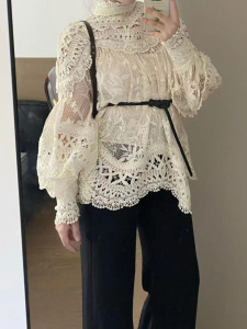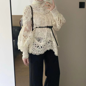 25秋季新款法式洋气重工镂空蕾丝长袖衬衫女设计感气减龄百搭立领