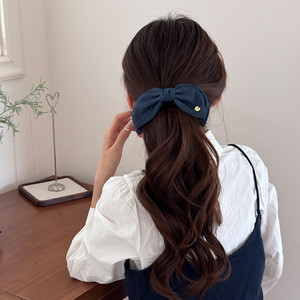 复古丹宁可爱牛仔蝴蝶结香蕉夹简约抓夹盘发扎头发马尾夹竖夹小众
