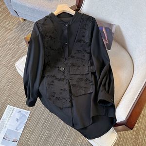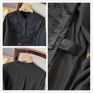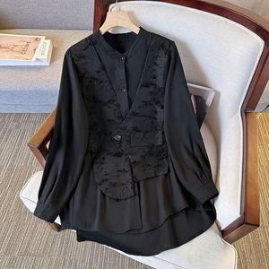 复古新中式假两件马甲衬衫女中长款2025春秋新款大码显瘦宽松上衣