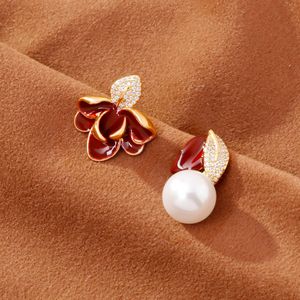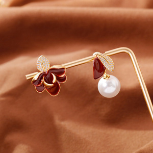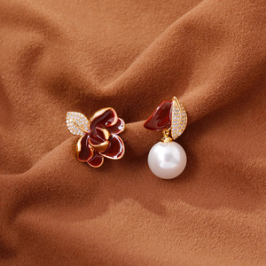 珐琅滴油AB款不对称珍珠耳坠时尚个性气质高级感耳环2025秋冬爆款