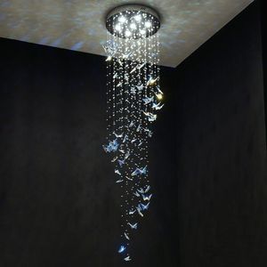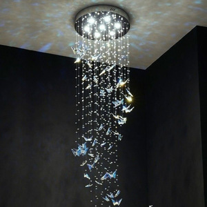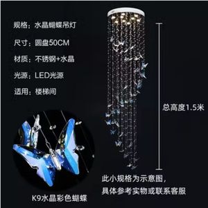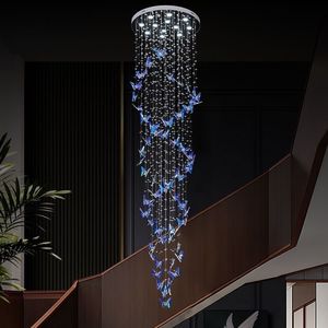 水晶楼梯灯现代轻奢蝴蝶水晶客厅卧室灯公寓别墅复式楼蝴蝶吊灯