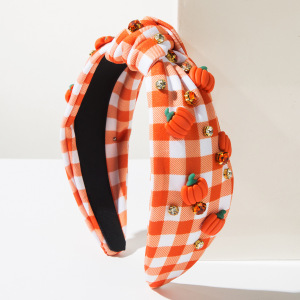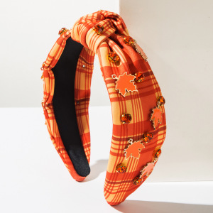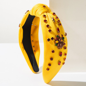 欧美新款感恩节发箍女网格布艺镶钻火鸡南瓜枫叶配件装饰节日发饰