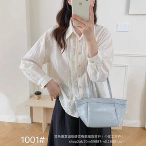 1001重工刺绣压褶衬衫女2025早秋季新款设计感小众小个子打底上衣