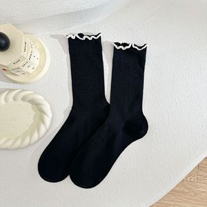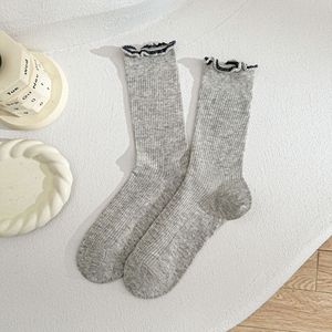 木耳边堆堆袜子女夏季薄款纯棉无骨中筒袜配玛丽珍鞋甜美日系长袜