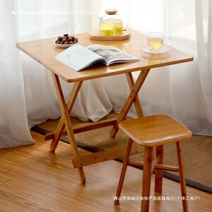 折叠桌子餐桌家用小户型饭桌楠竹简易便携式阳台木材方桌夜市摆摊