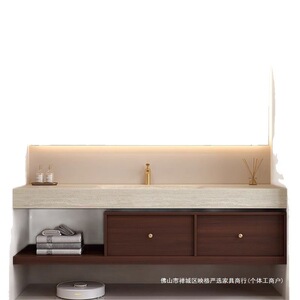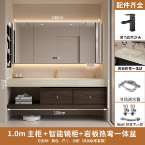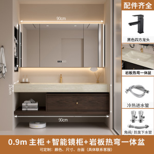 中古风智能岩板热弯一体盆浴室柜组合洗漱台卫生间智能洗手洗脸池