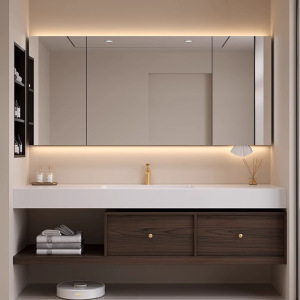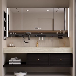 智能镜柜+岩板热弯一体盆-120cm**收藏关注千城入户