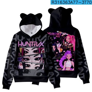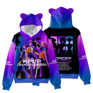 3D新款电影 K-POP 猎魔女团猫耳朵连帽数码印花带帽卫衣成人童装