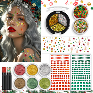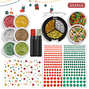 跨境圣诞节面部化妆闪光棒彩绘亮片珠光粉啫喱脸贴水钻眼影盘套装