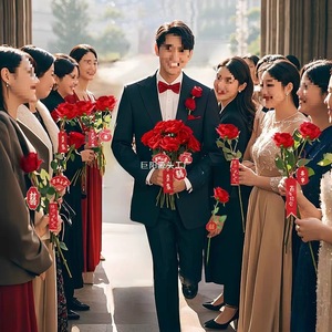 结婚礼拍照道具玫瑰花束新郎接亲一路生花新娘晨袍订婚手捧花