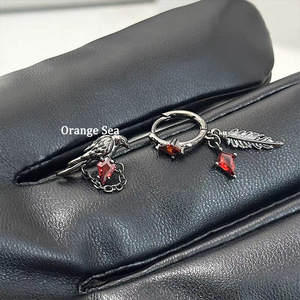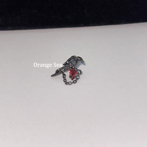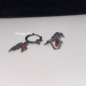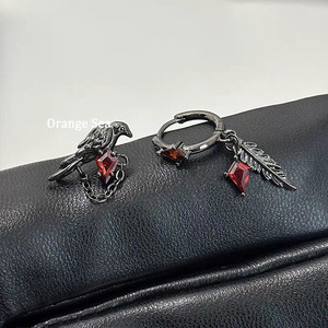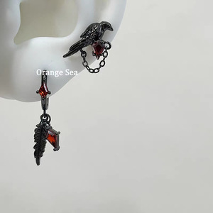 Orange Sea甜酷黑红乌鸦耳骨钉暗黑辣妹黑羽耳圈耳环双耳洞耳饰女
