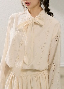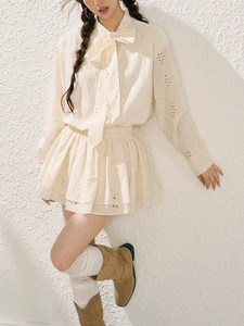 法式镂空花朵飘带领衬衫女外套显瘦蛋糕裙半裙套装