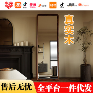 实木全身镜桐木落地镜家用高颜值玄关客厅穿衣镜可挂墙全身镜