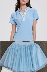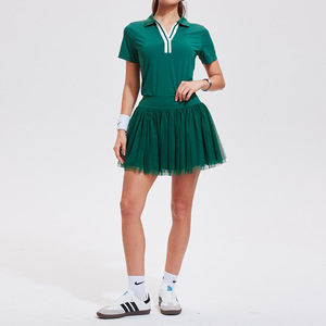 跨境新款运动套装女休闲速干防走光蓬蓬裙短袖polo衫羽毛网球服女
