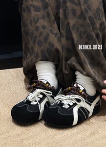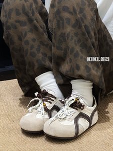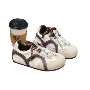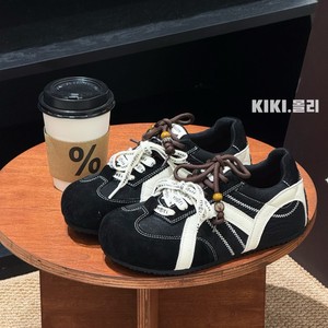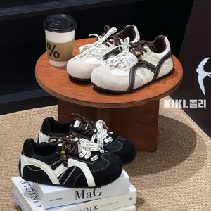 超软厚底潮流德训鞋女2025秋新款丑萌双鞋带串珠内增高休闲运动鞋